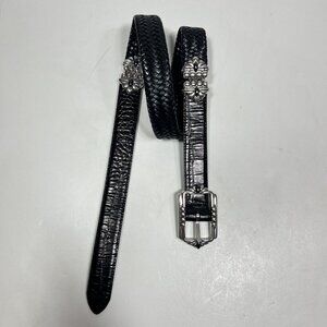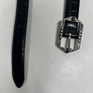 Brighton Black Brown Weave Reversible Belt Silver Tone Buckle Swivels Sz S / 28