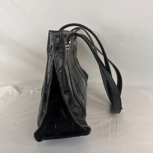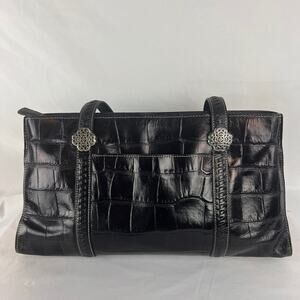 Brighton Black Croc Embossed Leather Shoulder Bag Rectangle Purse 14 x 8