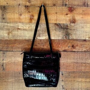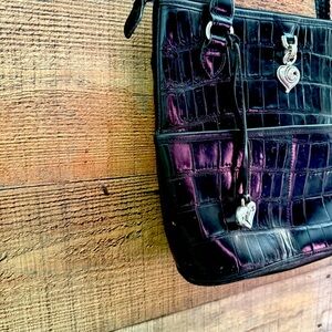 Brighton Black Croc Embossed Leather Tote Shoulder Bag