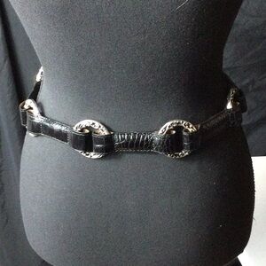 Chic black croc-embossed belt by Brighton. Features elegant silver accents. Perfect for elevating any look.
