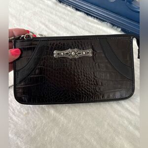 Brighton Black Croc-Embossed Crossbody Clutch with Silver Accent