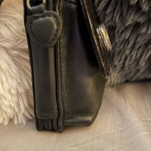Cute Brighton wristlet. Has a zippered area for coins. Outside pocket has a Velcro closure. Known for its quality, Brighton did not disappoint with this little treasure.