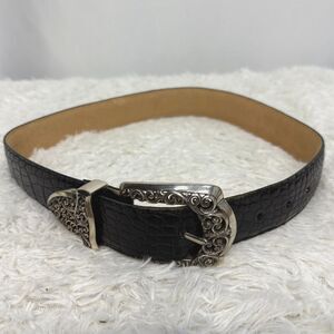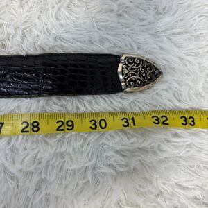 Brighton Black Croc‑Embossed Leather Belt with Scroll Buckle – Size ~30