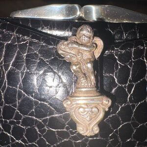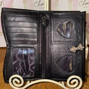 Chic black wallet with croc-embossed texture. Stylish and versatile accessory.