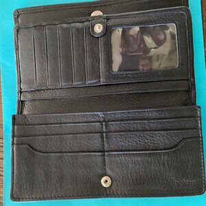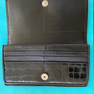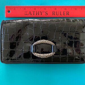 Brighton Black Croc-Embossed Wallet with Silver Accents