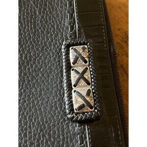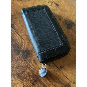 Brighton Black Faux? Leather Zip-Around Wallet With Heart Charm & Embossed