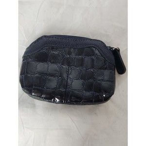 Brighton Black Leather Coin Purse Heart Croc Embossed Shiny Zip Closure 4". Condition is Pre-owned. Shipped with USPS Ground Advantage.