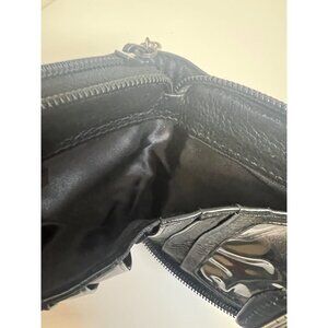 Brighton Black Leather Compact Wallet W/ Croc-Embossed Clasp & Zippered Pockets
