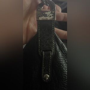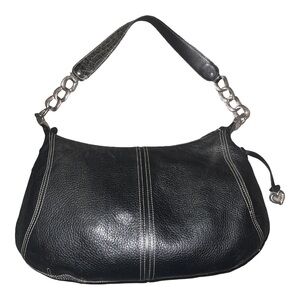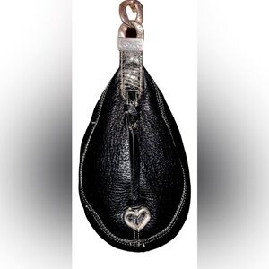 š¤ Brighton Black Leather Hobo Shoulder Bag With Silver Chain Strap Heart Charm