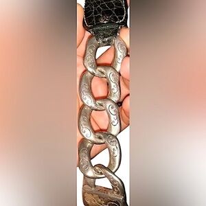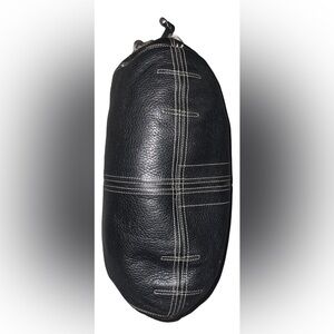 š¤ Vintage Brighton Black Genuine Leather Hobo Slouch Handbag Shoulder Bag Purse. White stitching. Handle comprised of leather and engraved silver metal linked chain. It also has a cute heart charm attached.