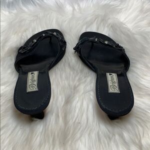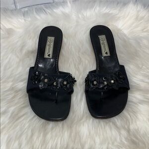 Elegant black mules with floral embellishments. Comfortable heel. Perfect for any occasion.