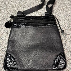 Brighton Black Patent Leather Crossbody Bag w/ Adjustable Strap