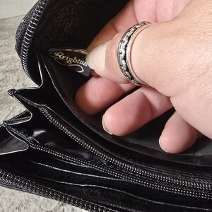 Brighton Black Pebbled Leather Mini Purse / Large Wallet 3 Sections Y2K Braided leather straps / handles.