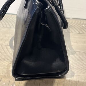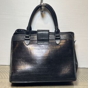 The Brighton Black Striped Leather Flap Satchel Bag is a stylish and practical accessory for women. Made from high-quality leather with a fabric lining, this medium-sized bag features a classic black striped pattern with a flap closure. The design includes a heart-shaped hang tag accent, perfect for adding a touch of charm to your casual outfit. This vintage-inspired Y2K piece is from the renowned Brighton brand, making it a timeless and versatile addition to your collection.