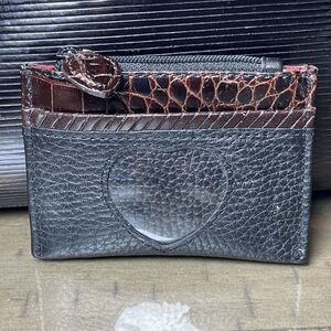 Brighton Black Purse Leather Flap Satchel Bag wallet set vtg Y2K Striped heart