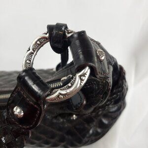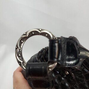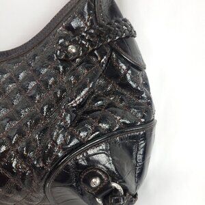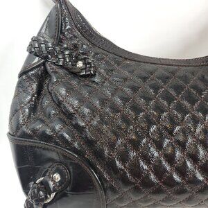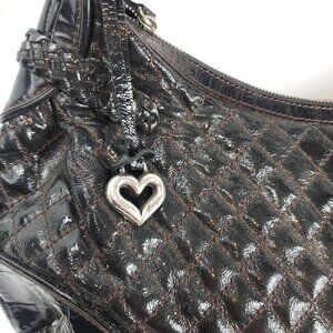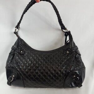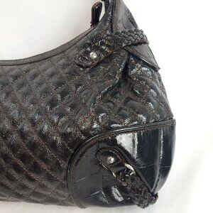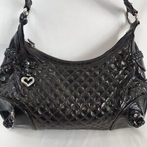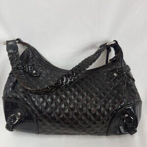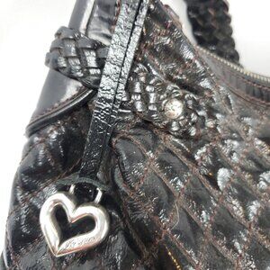 Brighton Black Quilted Leather Braided Trim Large Shoulder Bag