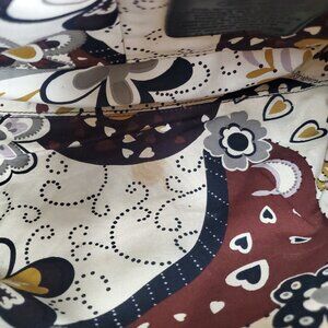 Braided Strap & Side Trim, Floral Print Lining, Interior Pockets, Zipper Top, Quilted Design