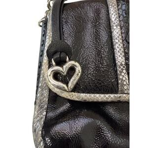 Brighton Black Silver Patent Leather 3D Flower Mini Shoulder Bag