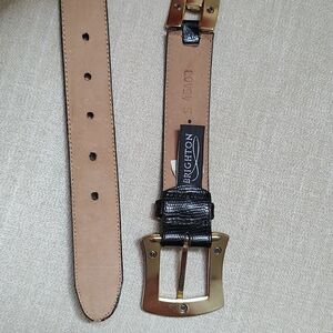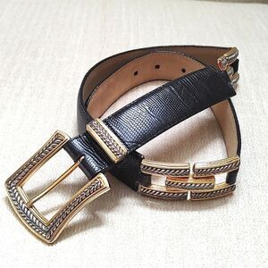 Brighton Black Snake Embossed Leather Belt Gold & Silver Buckle Loop & Links