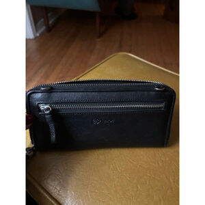 Brighton Black & White Braided Leather Zip Around Wallet One Size