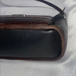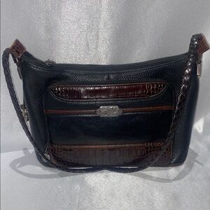 Brighton Black and Brown Shoulder Bag with Leather Texture and Silver Hardware