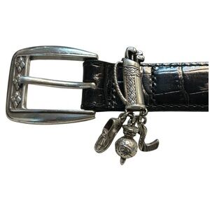 Brighton Black crocodile Belt with silver Golf Charms Buckle size M/L 32