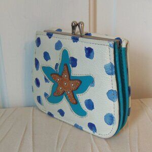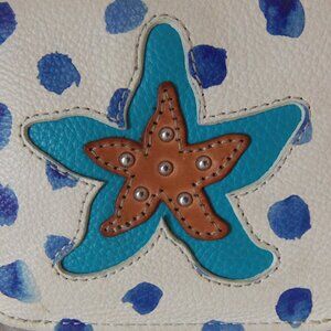 Brighton Blue Water French Kiss Wallet White Blue Starfish