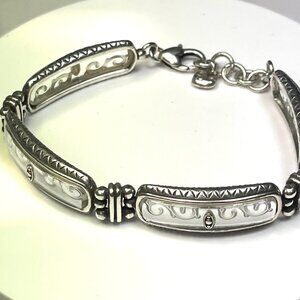 Pre-owned Brighton Bracelet- Silver, Filigree Details and Etched Acrylic. Brighton Tag. Minimalist Stackable . 8 inches adjustable with the Signature Brighton Lobster Clasp.