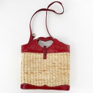 Brighton Braided Woven Wicker Straw and Heart Red Rattan