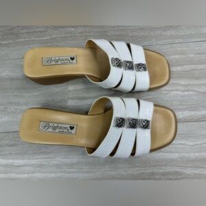 Brighton Brandy White Croc 3 Strap Made in Italy Sandals Womens Size 9.5