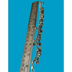 Brighton Bronze Faux Pearl Silver Bead Crystal Charm Bracelet