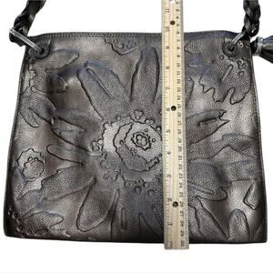 Brighton Bronze Metallic Leather Embossed Flower Tassel Shoulder Bag New!BRIGHTON Pewter