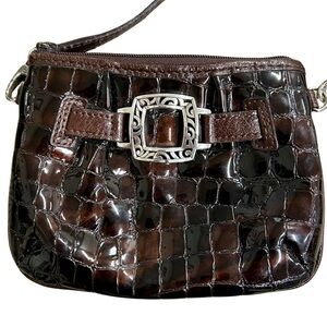 Brighton Brown Croc Embossed Crossbody Bag with Silver Buckle