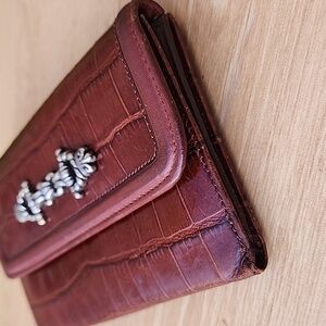 Brighton Brown Crocodile-Embossed Leather Clutch/Wallet
