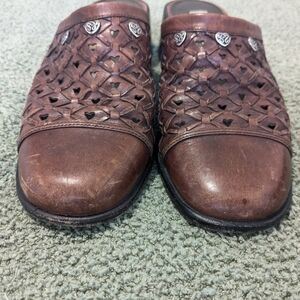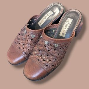 Brighton Brown Heart Cut-Out Leather Slip-On Heeled Mules Size 8.5 Cottagecore