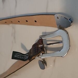Brighton Brown Italian Leather Croc Embossed Silver Hardware ML/32 Charm Belt