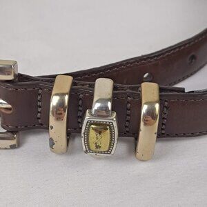 Brighton Brown Leather Belt Size Small 28 Silver and Gold Hardware Studded