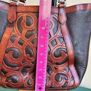 🤎 This Brighton bag has a story to tell and plenty of life left! Made of super-soft brown leather with pretty cut-out details and shiny silver hardware. Some small sewing repairs have been made (see photos), but this bag is still beautiful and ready for its next chapter.