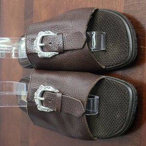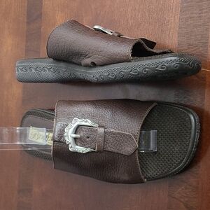 Brighton Brown Vicky Leather Silver Buckle Slip-on Sandals sz 7 Women's