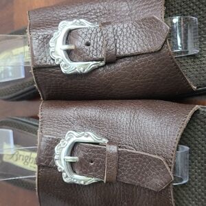 Brighton Brown Vicky Leather Silver Buckle Slip-on Sandals