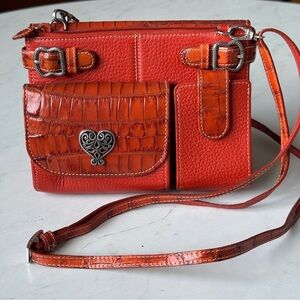 Brighton Burnt Orange Crossbody Organizer Leather Bag near perfect condition