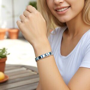 Brighton Cabana Blue Enameled Bangle Bracelet - Size M