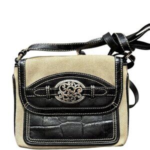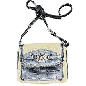 Brighton Canvas & Croc Embossed Leather Crossbody Purse
