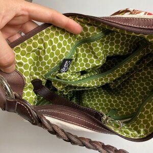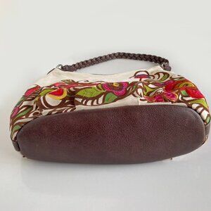 Brighton Canvas Shoulder Bag Embroidered Flowers Butterflies Braided Leather
