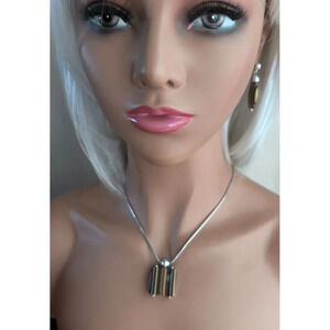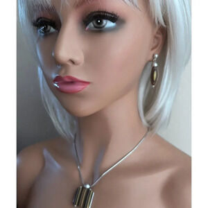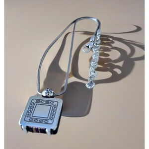 Boho tribal Brighton brown lucite and silver tone bangle bracelet-dangle earrings and pendant necklace-brown design mimics modern tortoise shell-excellent condition! vintage