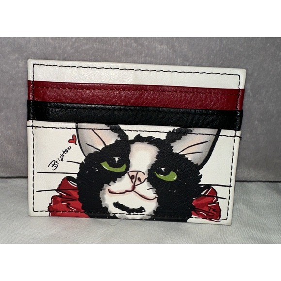Brighton Card Wallet With Black & White Kitty Cat Kitten Cardholder NEW