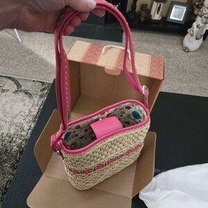 Brighton Carmela Pink Straw Raffia Crossbody Bag / Purse with box and dust bag