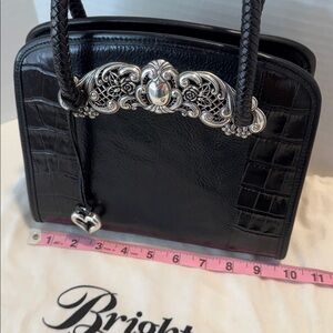 Brighton Chantilly Black Leather Croc Satchel Handbag Purse