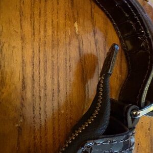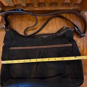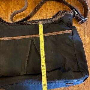 Brighton Charlie Pocket Shoulder Bag – Black Nylon with Brown Croc Patent Trim