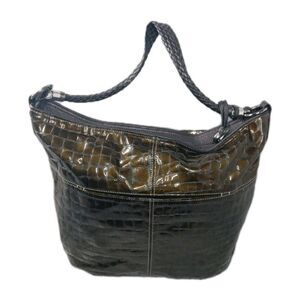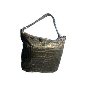 Brighton Cher Muse L Shoulder Bag Patent Leather Croco Embossed Khaki Green